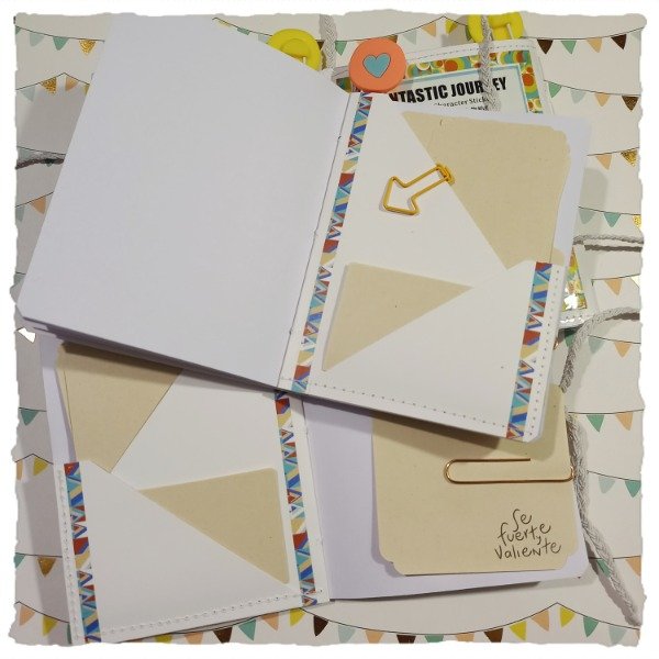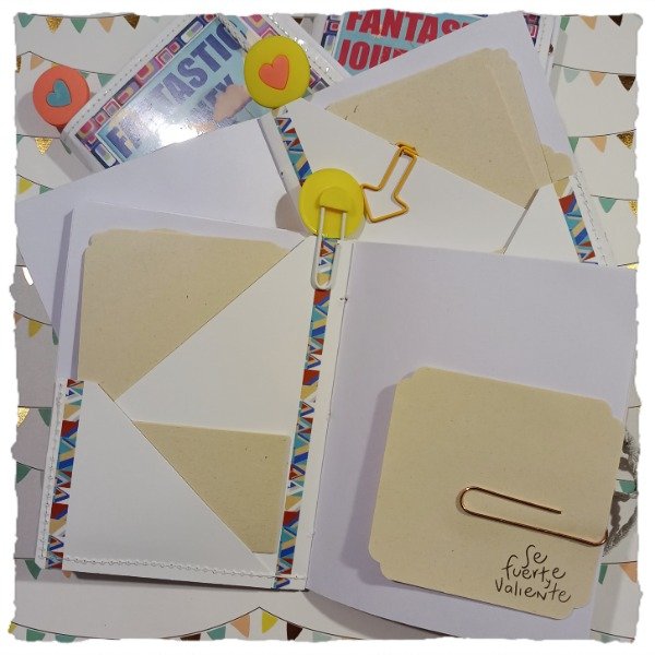 Detalle: cuaderno de 30 hojas, con cierre elástico y diferentes diseños de tapa, protegido con film cristal. Trae 25 papeles para notas, 2 clips de diseño, 1 clip chico, 1 clip grande y 1 sobre central con 3 bolsillos.