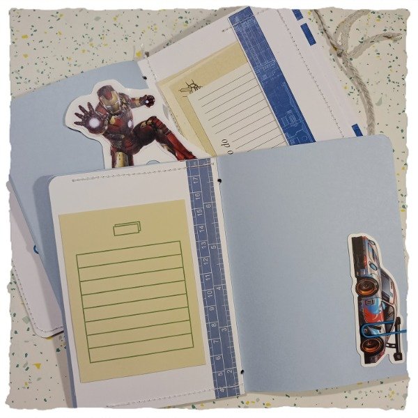 Blue - Detalle: trae tres insertos de 30 hojas color celeste c/u, cada inserto contiene un sobre scrap y dos bolsillos internos. Además incluye: 6 clips de color celeste, 12 notas adhesivas, 10 notas stickers (2 diseños), 1 plancha de 6 mini etiquetas, 8 vinilos, 10 stickers papel y 24 papeles de notas varias. Protegido con film cristal, chapita metálica de decoración, cierre con elástico y dije colgante.