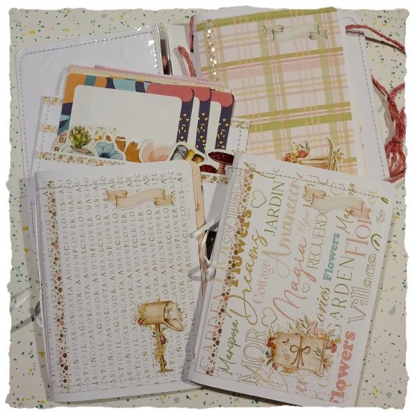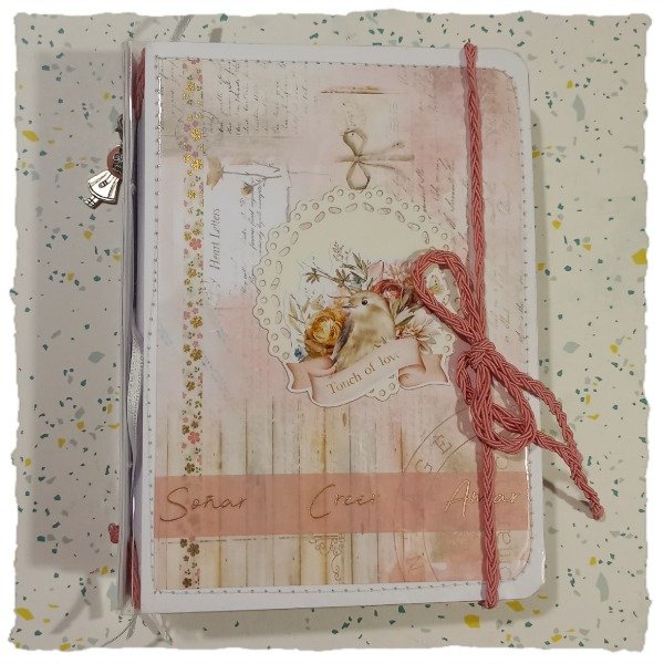 Pink - Detalle: trae tres insertos de 30 hojas (colores rosa, natural y blanco) c/u, cada inserto contiene un sobre scrap. Además incluye: 6 clips de color Golden Rose, un sobre suelto con 4 bolsillos, 10 stickers pequeños, 2 tiras de 3 marcos de papel, 10 notas stickers (2 diseños) y 50 papeles de notas varias (más de 20 motivos). Protegido con film cristal, cierre con elástico y dije colgante.