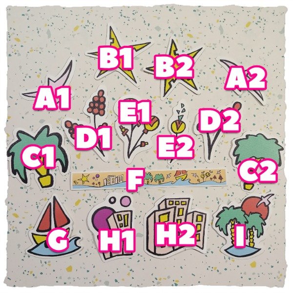 Vinilos B1, B2, C1, H2, I: 5 x 5 cm