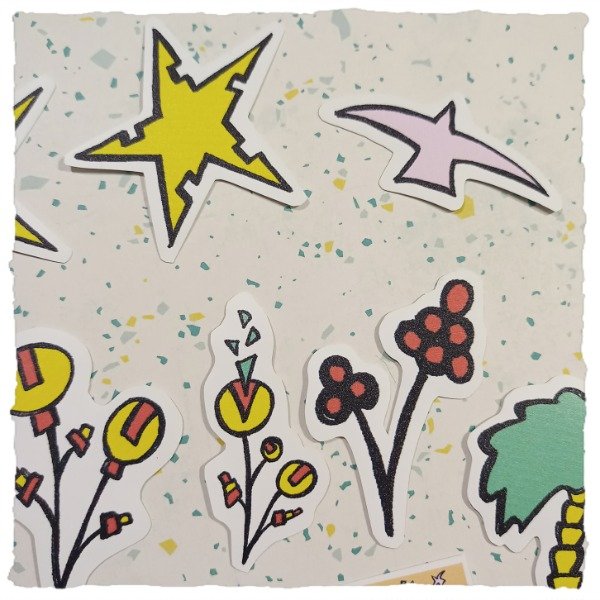 Detalle: stickers en vinilo UV antirayas, diseños variados, ideal para pegar en termos y botellas.