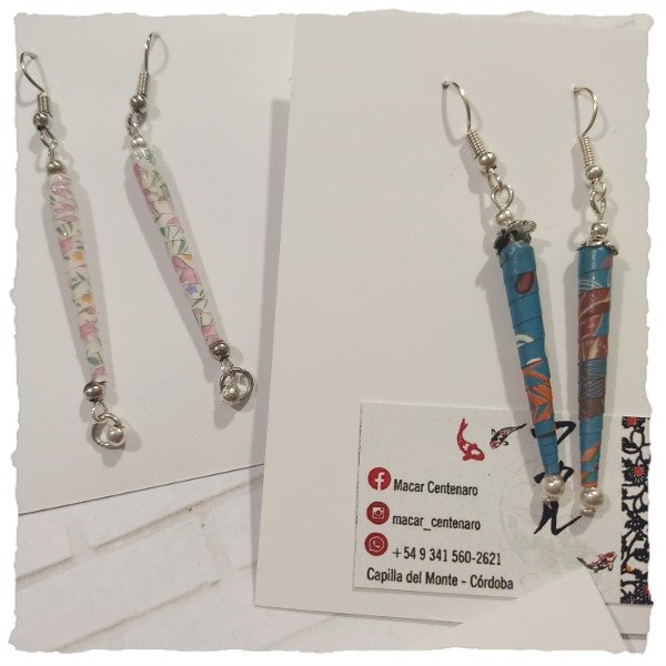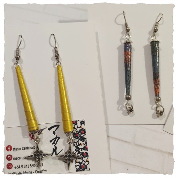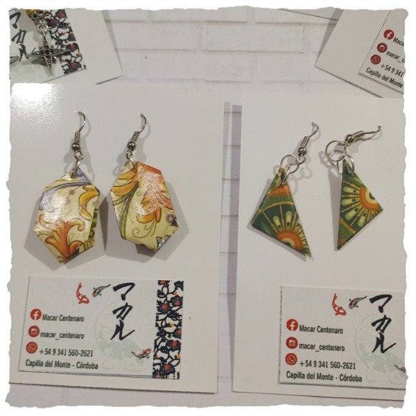 Detalle: aros colgantes de diseños variados en origami.