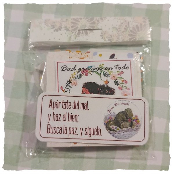 Detalle: pack para mini souvenir con todo lo que se ve en la foto. Trae 10 mini papeles artesanales y un mini cuaderno de diseño sin elección.